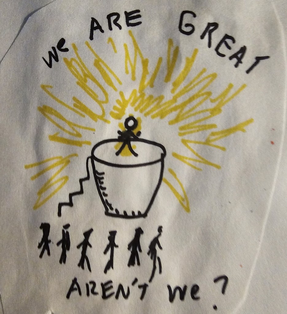 In an extroverted, hypercompetitive society I suppose that loud and flashy will be mistaken for important, crucial, even truthful, which means people miss important undercurrents. But it’s important in life and society to have room for resiliency, moderation, introspection, steadiness, perseverance, courage, caring, understanding and humility in which the focus is on intention, nor attention. Historical narratives, political and business coverage, even coverage of seemingly good things often focus on what grabs attention. Institutions such as religion seem to prop up this view, with an emphasis on spectacle and ritual, and of course worship. People of faith may somehow view God as huge and powerful, like some sort of supernatural Wizard of Oz, giving tokens or punishment, a reflection of patriarchal ethos. I guess there was a reason why hangings were a public spectacle.
